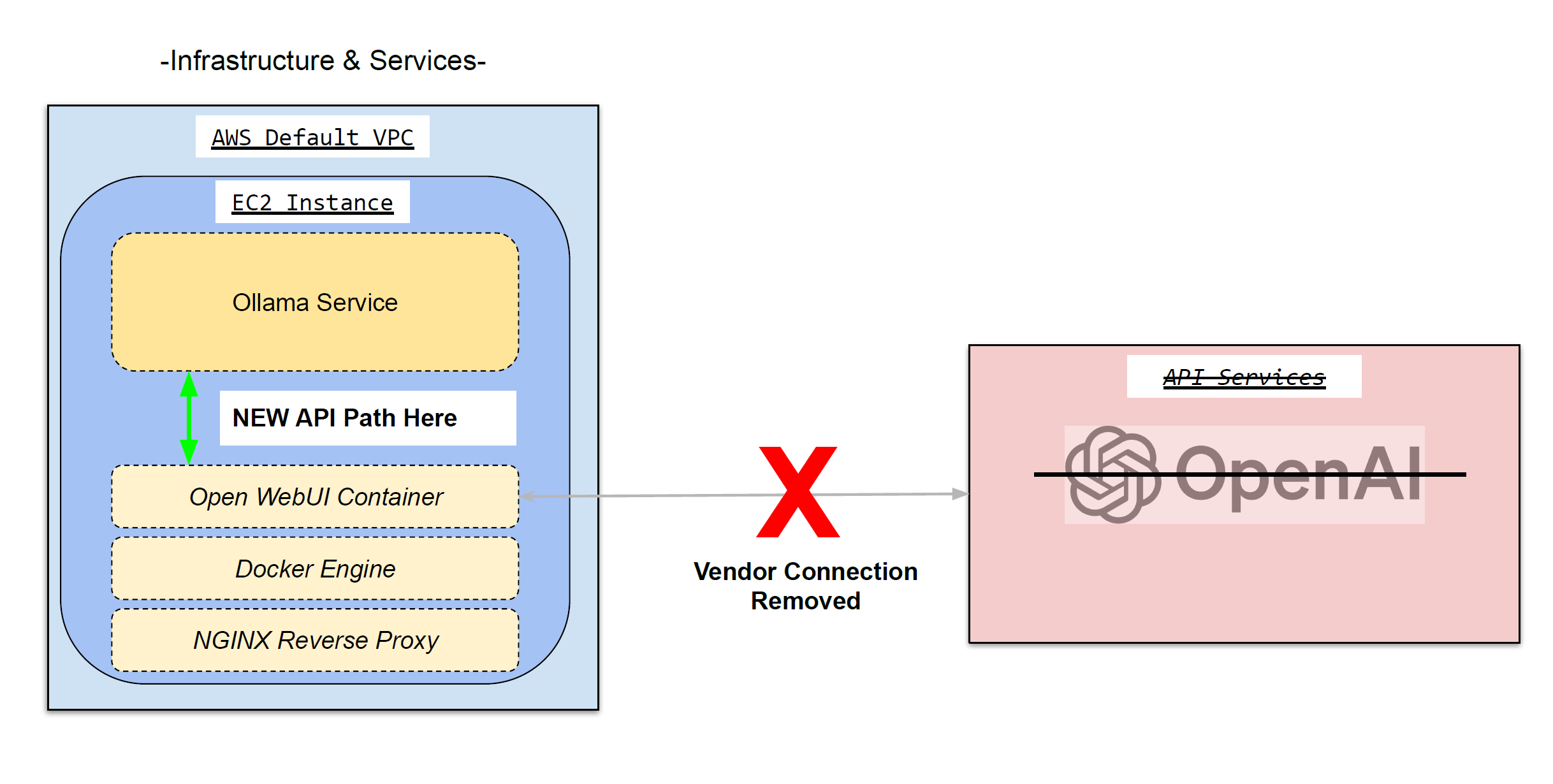 This deployment disconnects the generative AI tool from all vendor APIs & services.